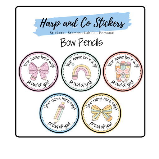 Bow Pencil Personalised Stickers Show your love for creativity and encouragement with our Bow Pencil Personalised Stickers! Featuring sweet and che...