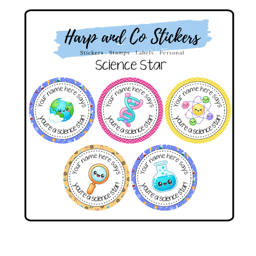 Science Star Personalised Stickers Celebrate curiosity and achievement with our Science Star personalised stickers! Featuring adorable science-them...